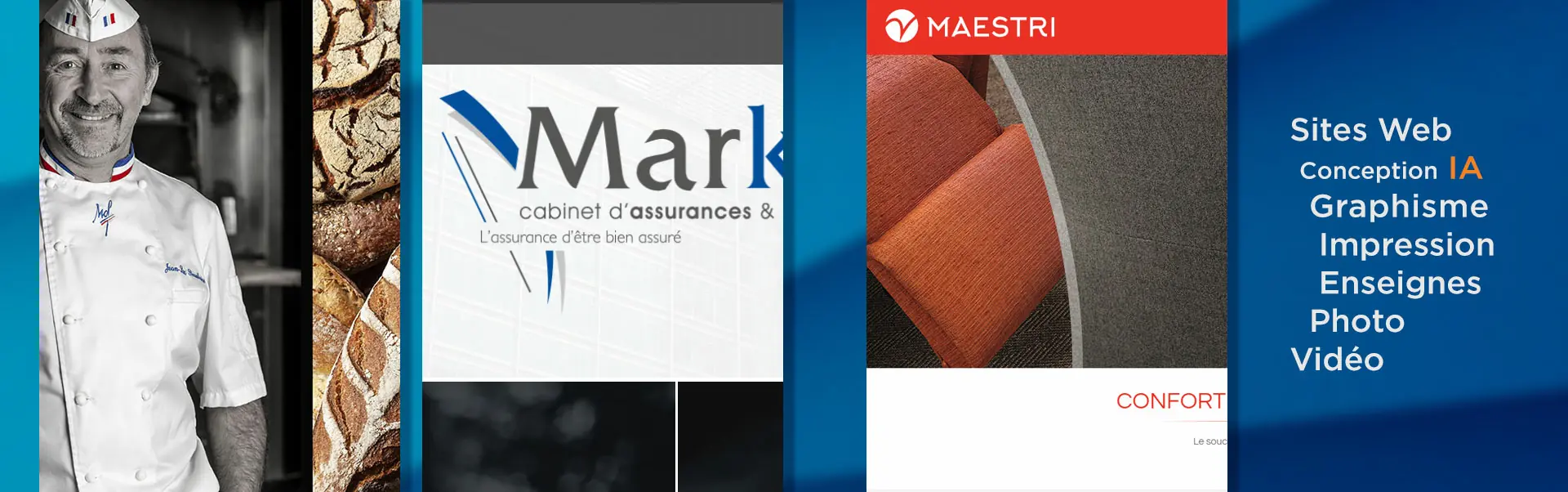 Création de site internet, identité visuelle, photographie, catalogues, impression et signalétique.